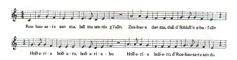 Holleria, hollero, holleriaho- holleria, hollero, d`Roahauserer san do.