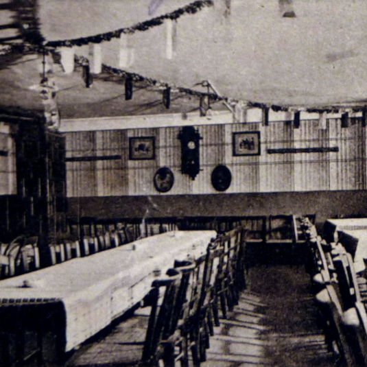 Historische Frontansicht des Gasthofs Kronschnabl aus der Weimarer Zeit, sowie zwei Innenansichten des Gasthofes.
